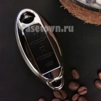 Чехол из металла с натуральной чёрной кожей, защищающие кнопки от оригинального 3-х кнопочного смарт ключа Ниссан Х- Треил т32, Ниссан Теана. В отличие от чисто кожаных изделий, этот аксессуар имеет вес. Тем самым придаёт её владельцу больше солидности и уверенности в защите своего ключа.