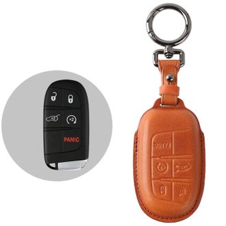 Чехол для автомобильного смарт ключа Джип Гранд Чероки, Чероки и Компас. Аксессуар выполнен из натуральной кожи светлого коричневого цвета. Прошит по периметру изделия ниткой в цвет изделия. Ручной шов! В комплекте с чехлом идёт также брелок с кольцом карабином в цвет никеля, прокручивающимся на 360 градусов.