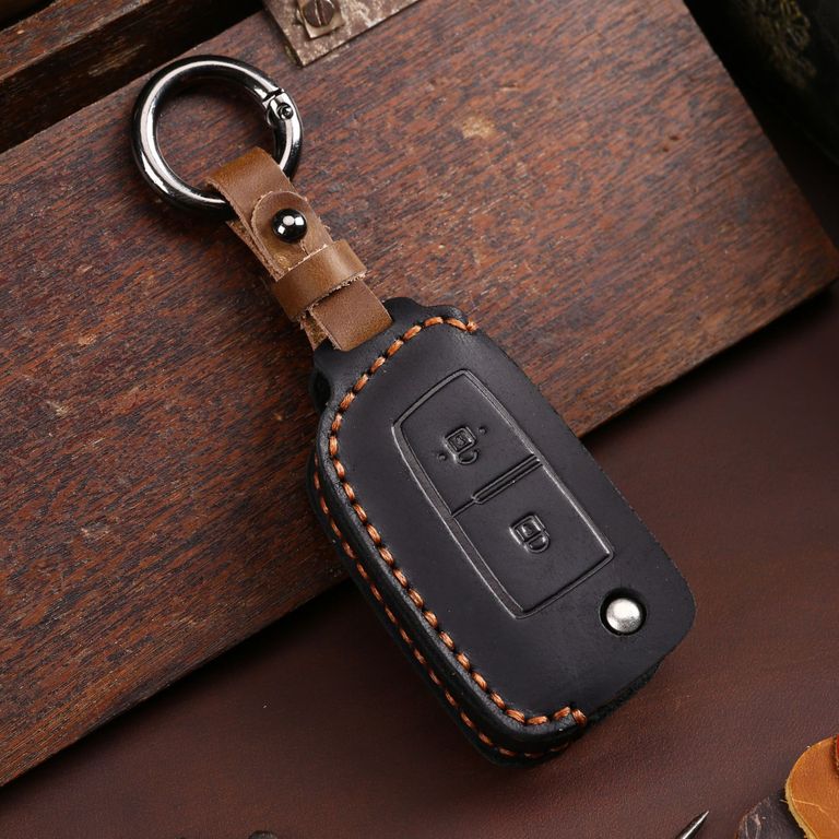 Чехол для выкидного автомобильного ключа Ниссан Кашкай джей 11, Микра, Жук и других моделей авто Nissan с выкидным ключом на 2 кнопки. Натуральная кожа! Ручной шов вощеной ниткой. Фурнитура в виде кольца карабина. Качественное изделие будет защищать Ваш ключ от зацапин, потёртостей и поломки корпуса ключа.