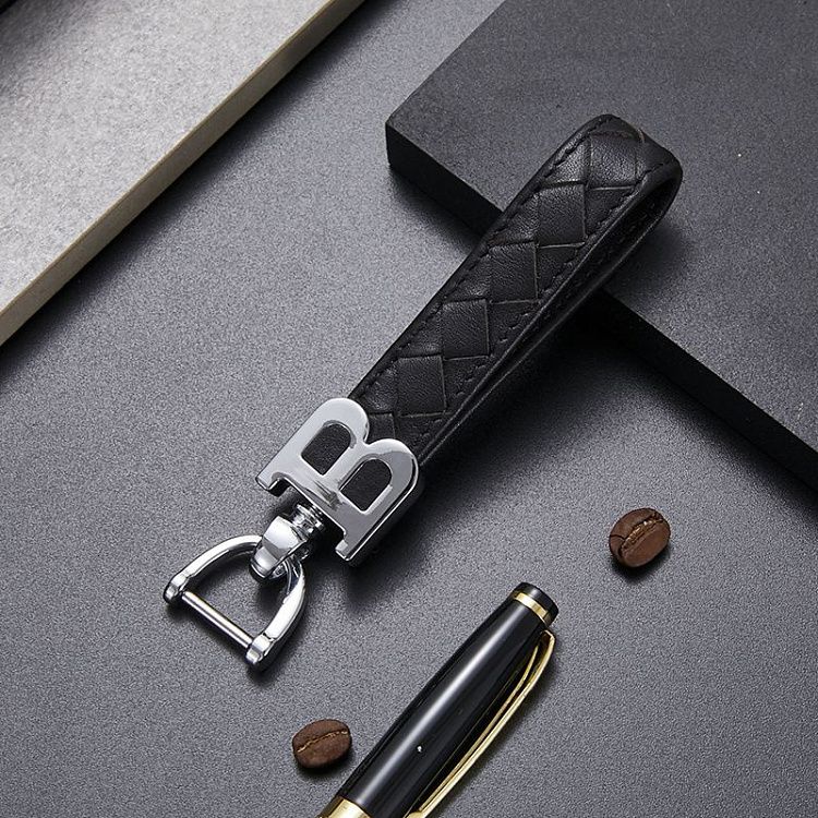Кожаный брелок чёрного цвета для автомобильных ключей разных марок. Аксессуар подойдёт также для квартирных ключей.