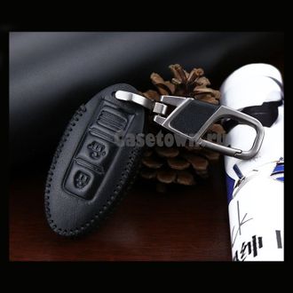 Черный чехол для 2-х кнопочного смарт ключа Nissan из экокожи. Коллекция "classic". Совместим с автомобильным и ключами ниссан жук, ноут, кашкай и тиидой. Логотип "Nissan" на изделии. Брелок карабин идёт в комплекте.