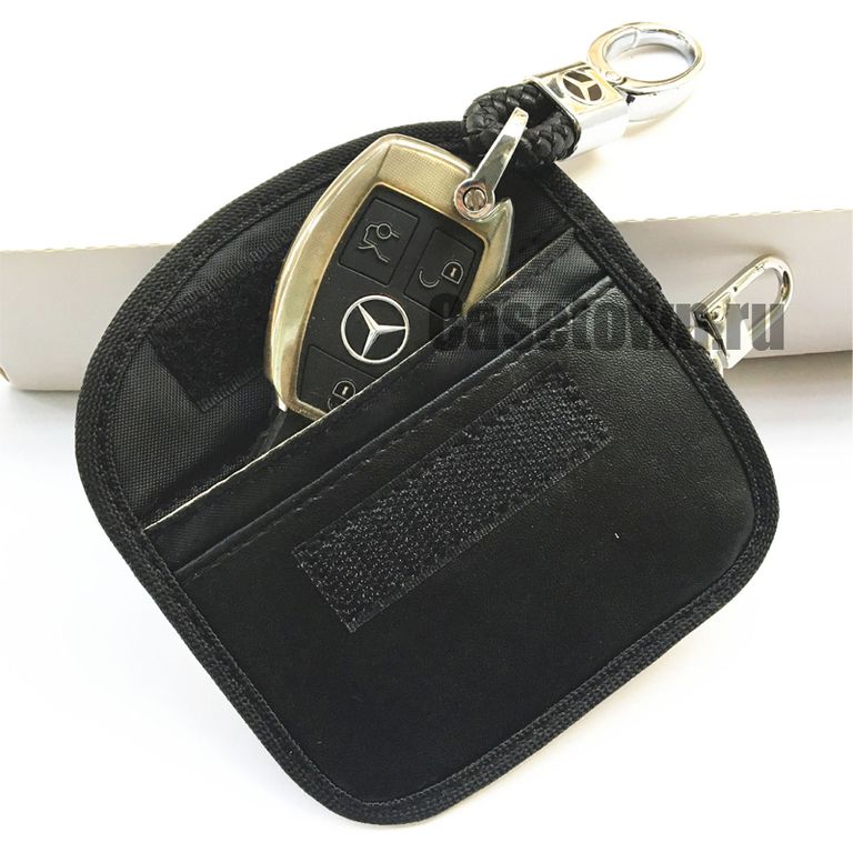 Экранирующий мини чехол Фарадея для автомобильных смарт ключей. Чёрный цвет. Блокировка от перехвата сигнала 3 лицами (автоугонщиками). Быстрое открытие/закрытие аксессуара с помощью липучки. Удобно в постоянном использовании.