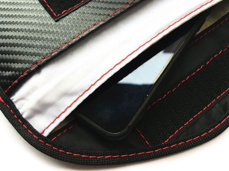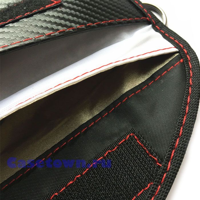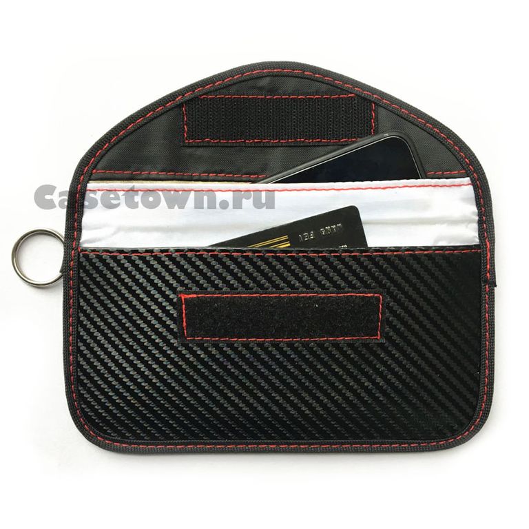 Экранирующий чехол глушилка для телефона в форме клатча. Цвет изделия: чёрный. По периметру прошит плотной красной нитью. Приятно и гармонично лежит в руке. Изделие не пропускает GSM, блютуз и другие сигналы. Идеально подойдёт для смартфонов, автомобильных смарт ключей и банковских карточек. В чехле 2 отделения: одно с фарадеевской тканью, второе без. Очень удобно в использовании.
