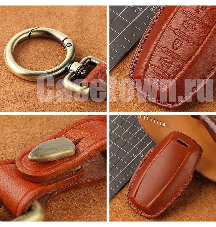Чехол из натуральной кожи коричневого цвета для автомобильных ключей Haval f7, F7x, Jolion, H6, H8, H9. Чехол прошит вручную вощеной ниткой. Все 4 кнопки полностью совпадают с оригинальным ключом Хавал. К аксессуару идёт кожаный брелок с кольцом карабином. Дарите только качественные подарки!