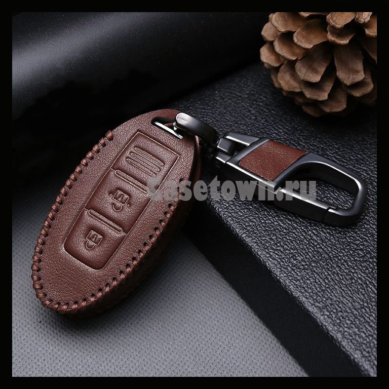 Коричневый чехол для автомобильного 2-х кнопочного ключа Nissan Qashqai 2, Tiida, Juke с системой старт/стоп. (автомобили заводящиеся с кнопки)Материал: качественная экокожа коричневого цвета. Коллекция "classic". 100% совпадение кнопок на аксессуаре с оригинальным смарт ключом Nissan.